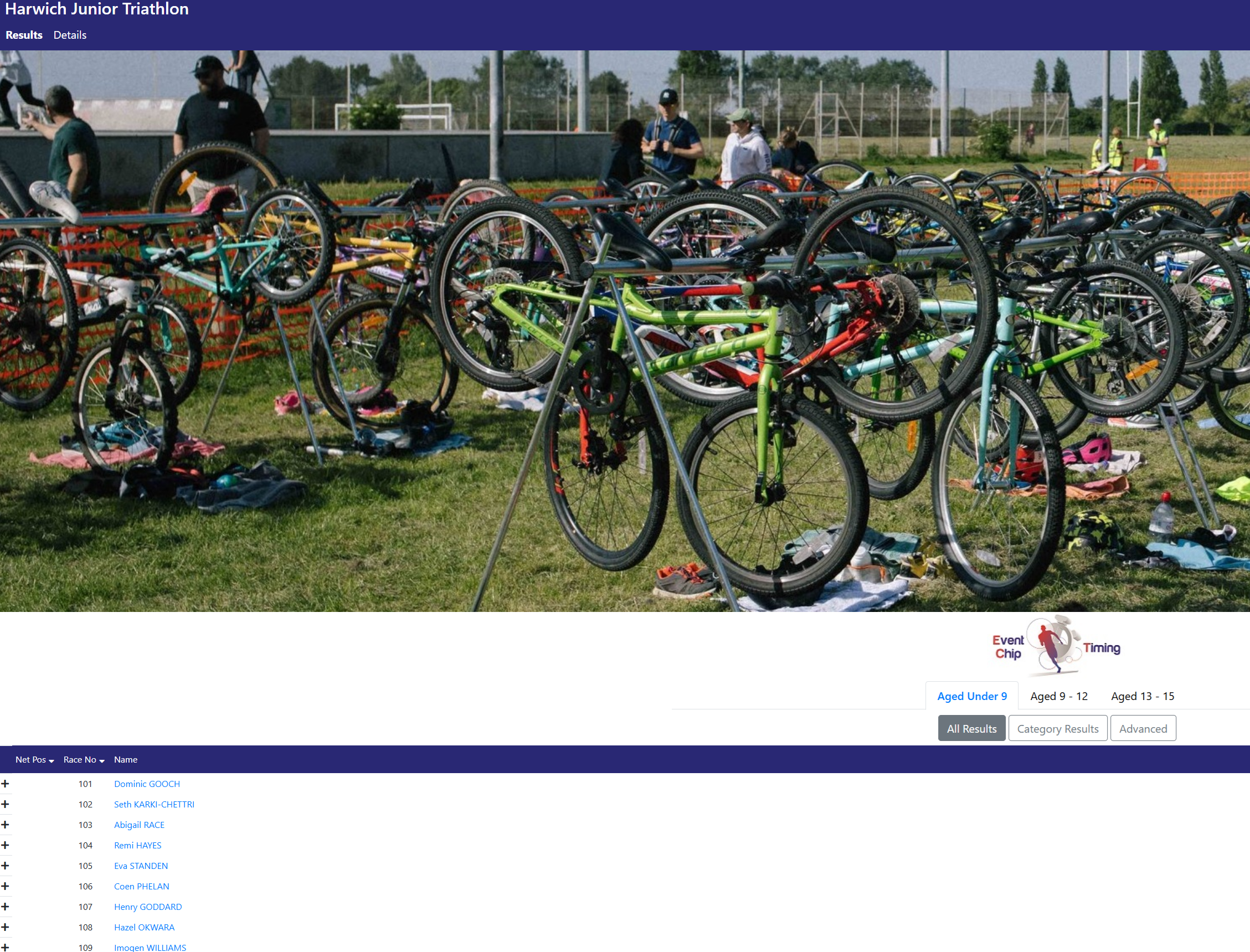 The timing page for the junior triathlon is ready and raring to go. This allows you to see up-to-the-minute race results for all of the junior races.