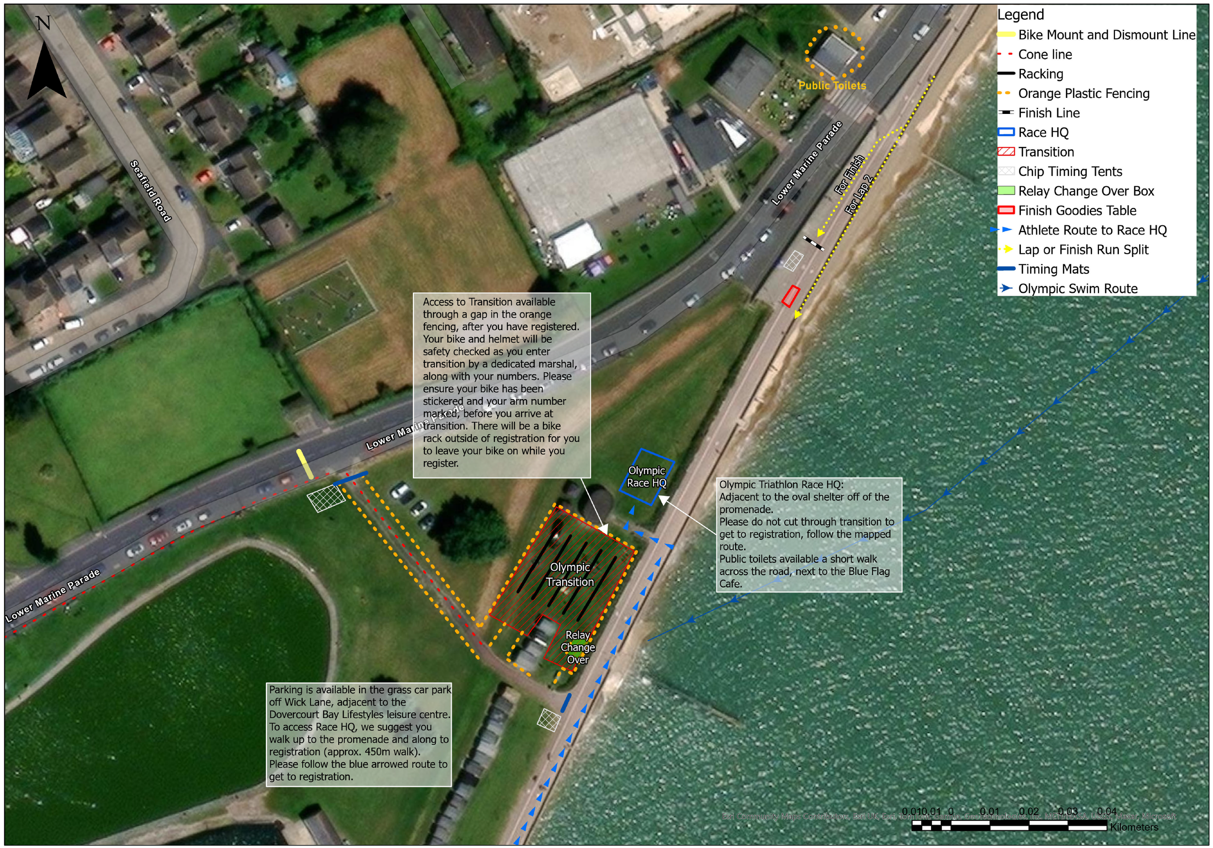 Race HQ and transition area on Sunday for the Junior and Sprint Triathlon